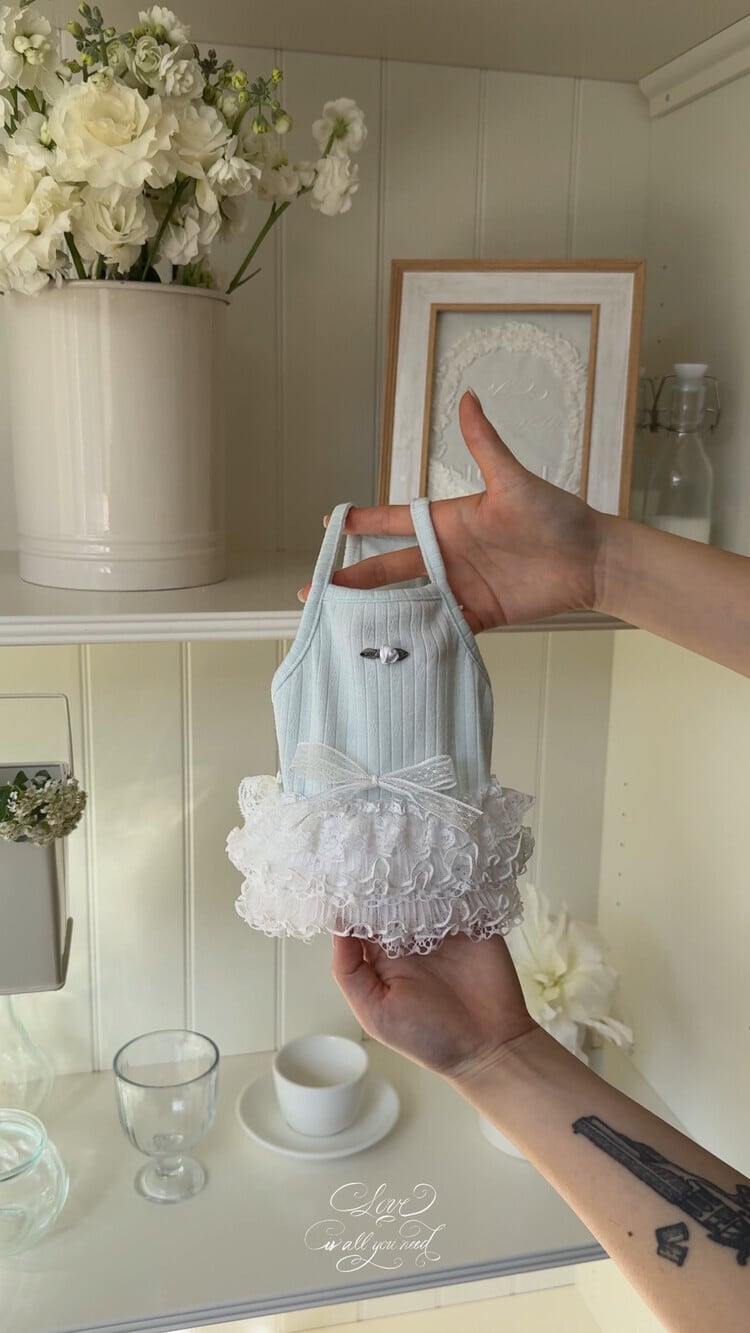 薄いティファニーミントカラーにレースでボリュームupしていて、爽やかでとても可愛らしいワンピースですꕤ*.゚