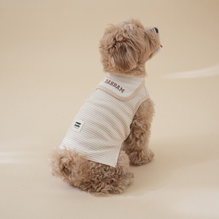 ベージュとアイボリーのストライプのデザインとセーラーカラーで、ペットの可愛さを一層際立たせます。