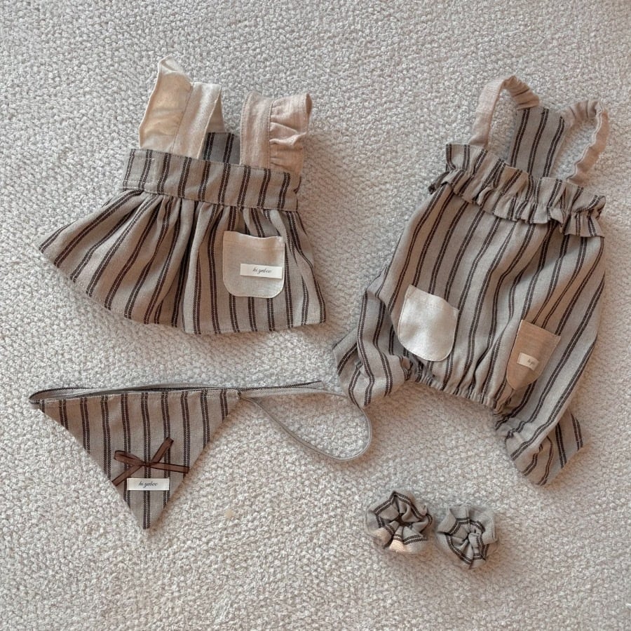 久しぶりに登場するクラシックな雰囲気のストライプワンピースとロンパースストライプ柄のバンダナとシュシュを加えて、すっきりとした可愛らしいコーディネートを完成させました♡♡