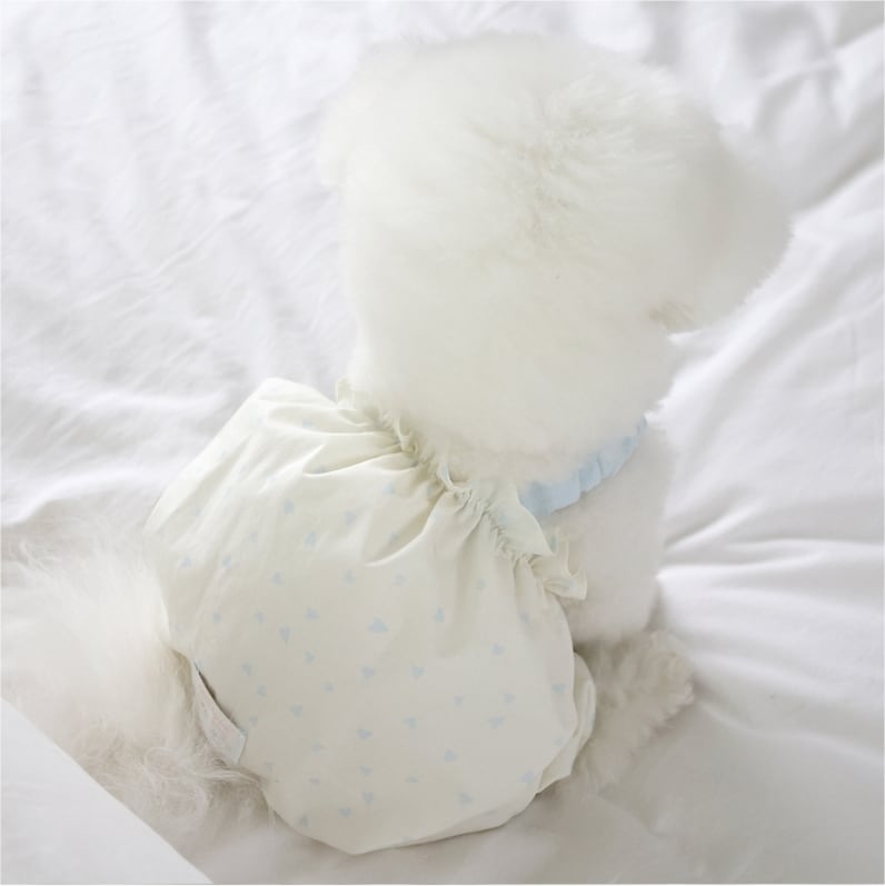 near by usの愛らしい雰囲気と色味を込めた独自の生地を使用し、キュートでユニークなハート柄とポイント配色デザイン。