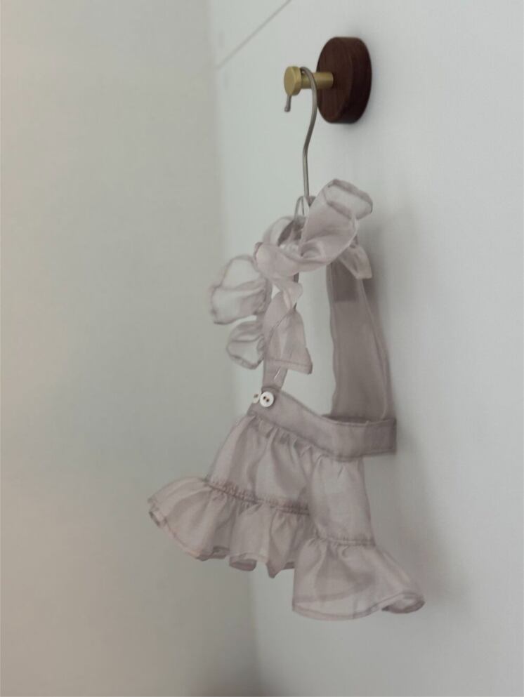 艶のある素材のサマーオーバーオール、シースルー素材でシチュエーションによって異なる表情を演出。