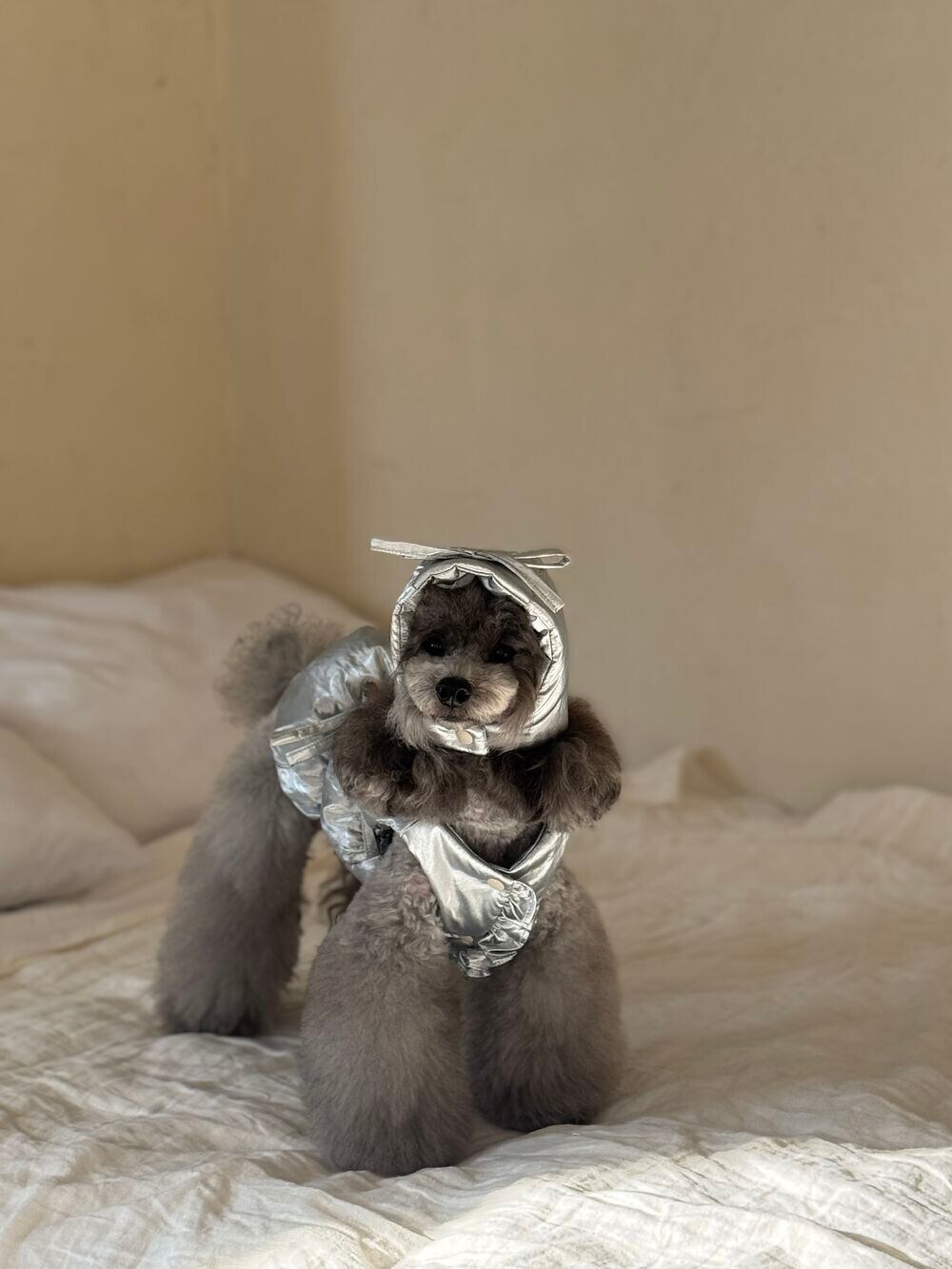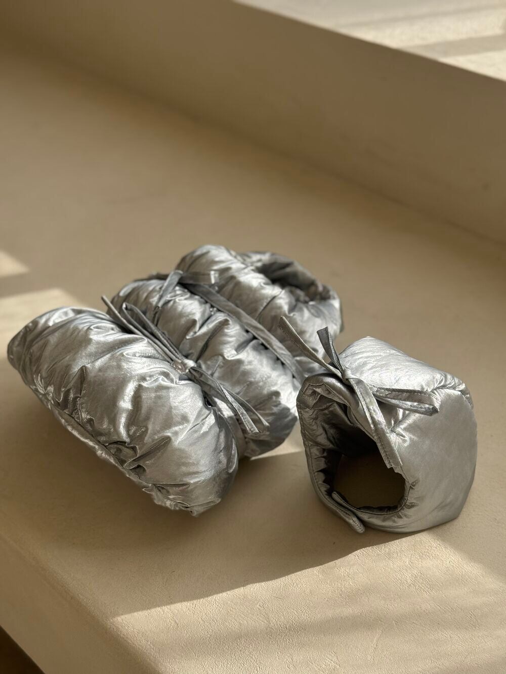 シャーリング方法から中綿の分量まで、一般的なお洋服とは異なる工程で丁寧に仕立てています。