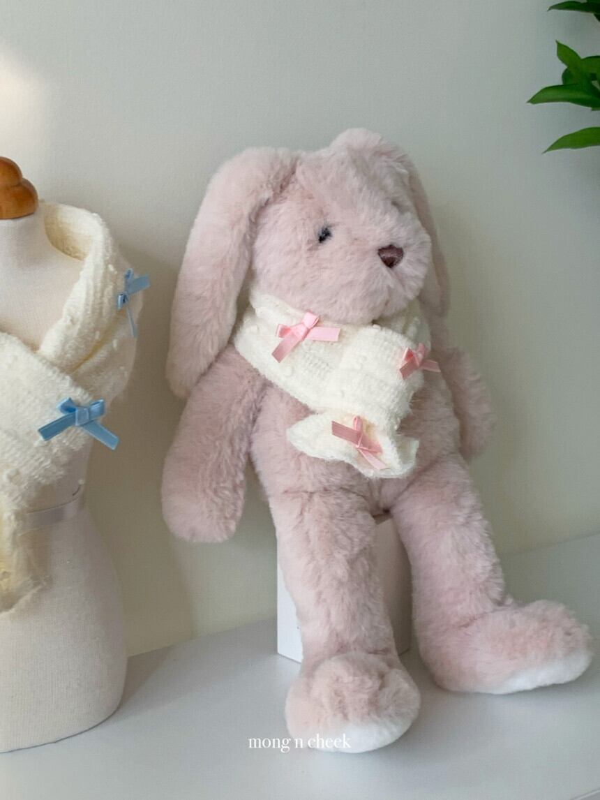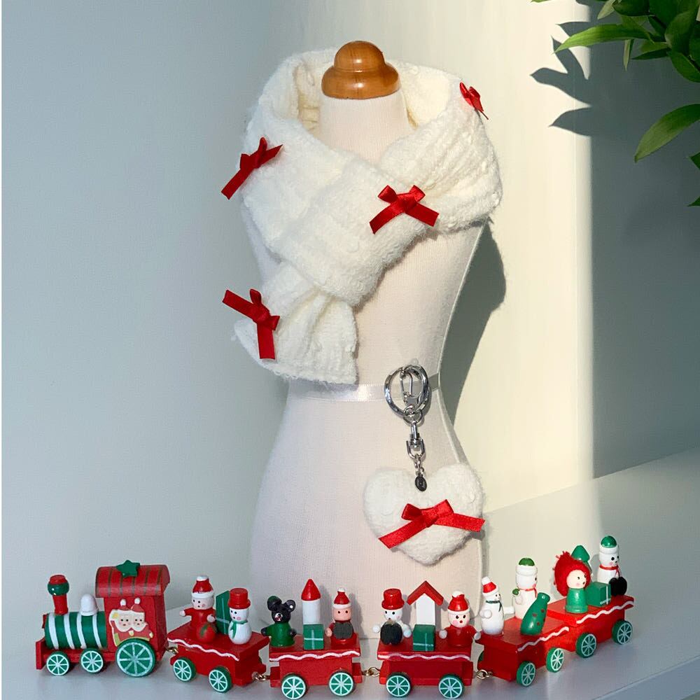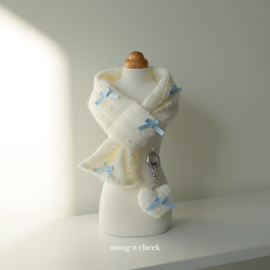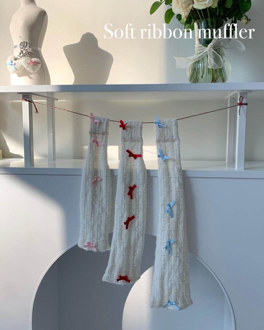 ふんわりとやさしい肌触りのニットショールに、小さなリボンをちりばめた、とびきり愛らしいデザイン。