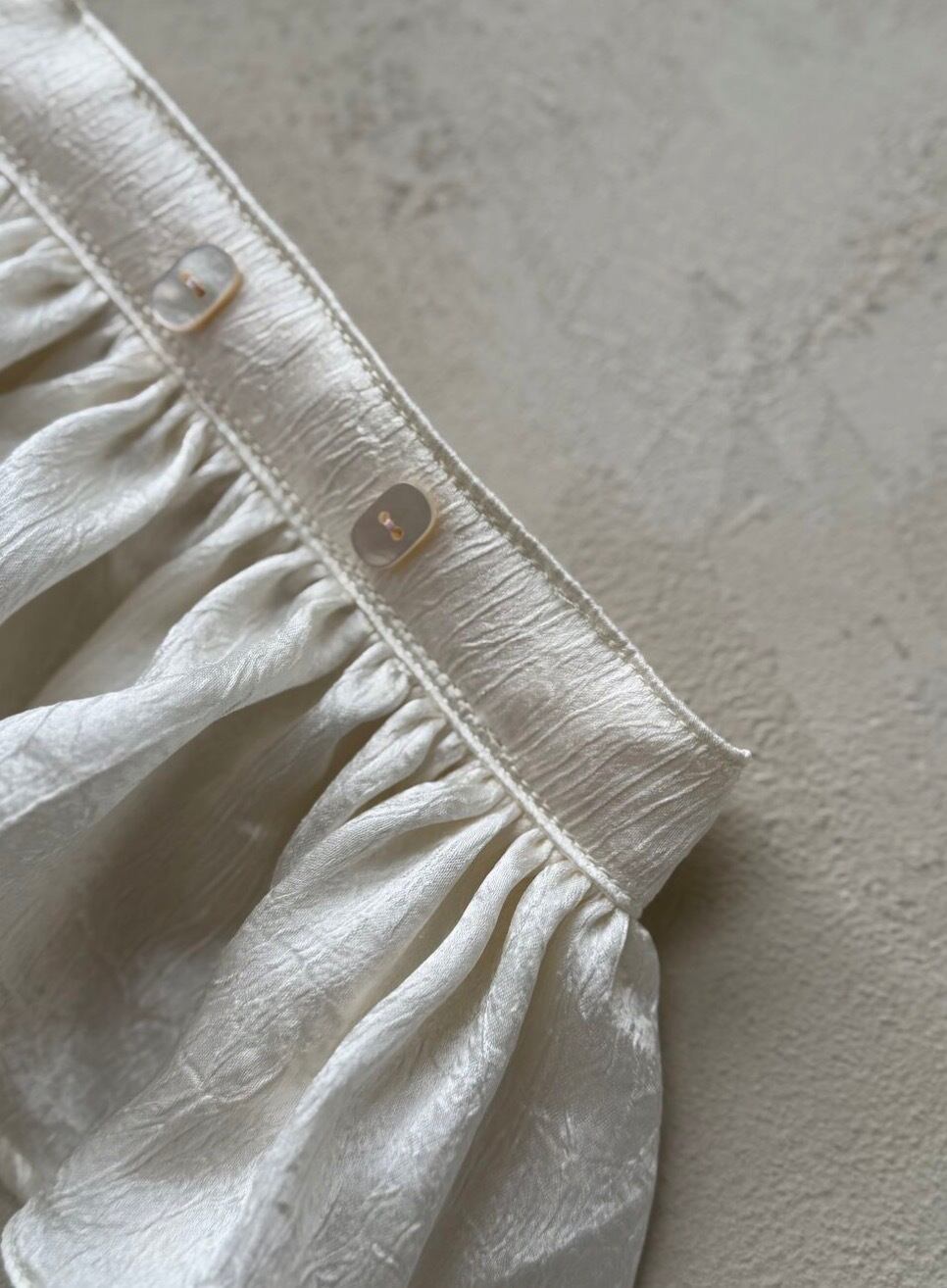 従来のスカートよりもさらに薄く軽い、一枚仕立ての構造で、より繊細でやさしい雰囲気を演出します。