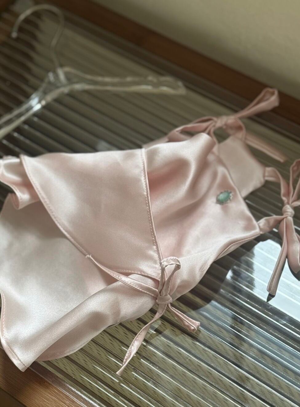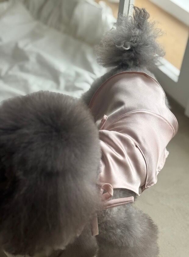 さらに、肩のリボンストラップとペンダントディテールが、シルクのラグジュアリーな雰囲気に、さりげない可愛らしさをプラス。