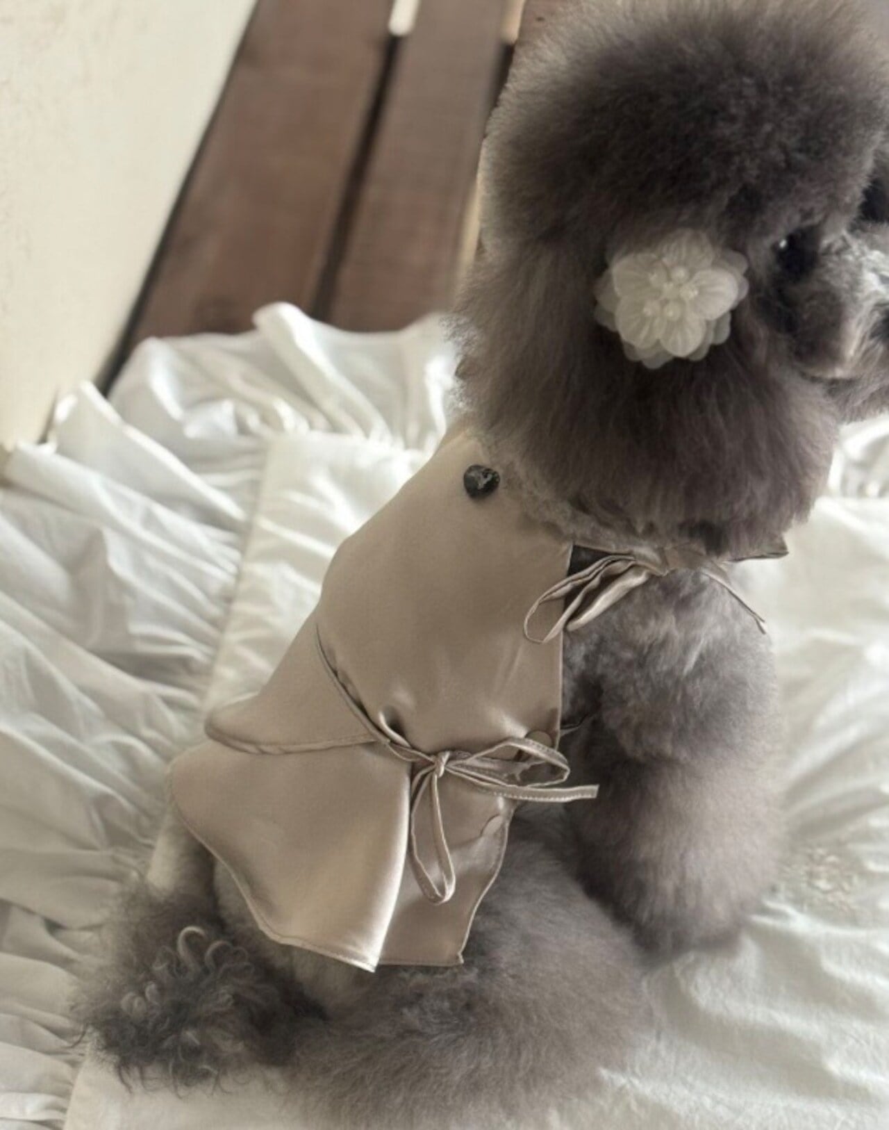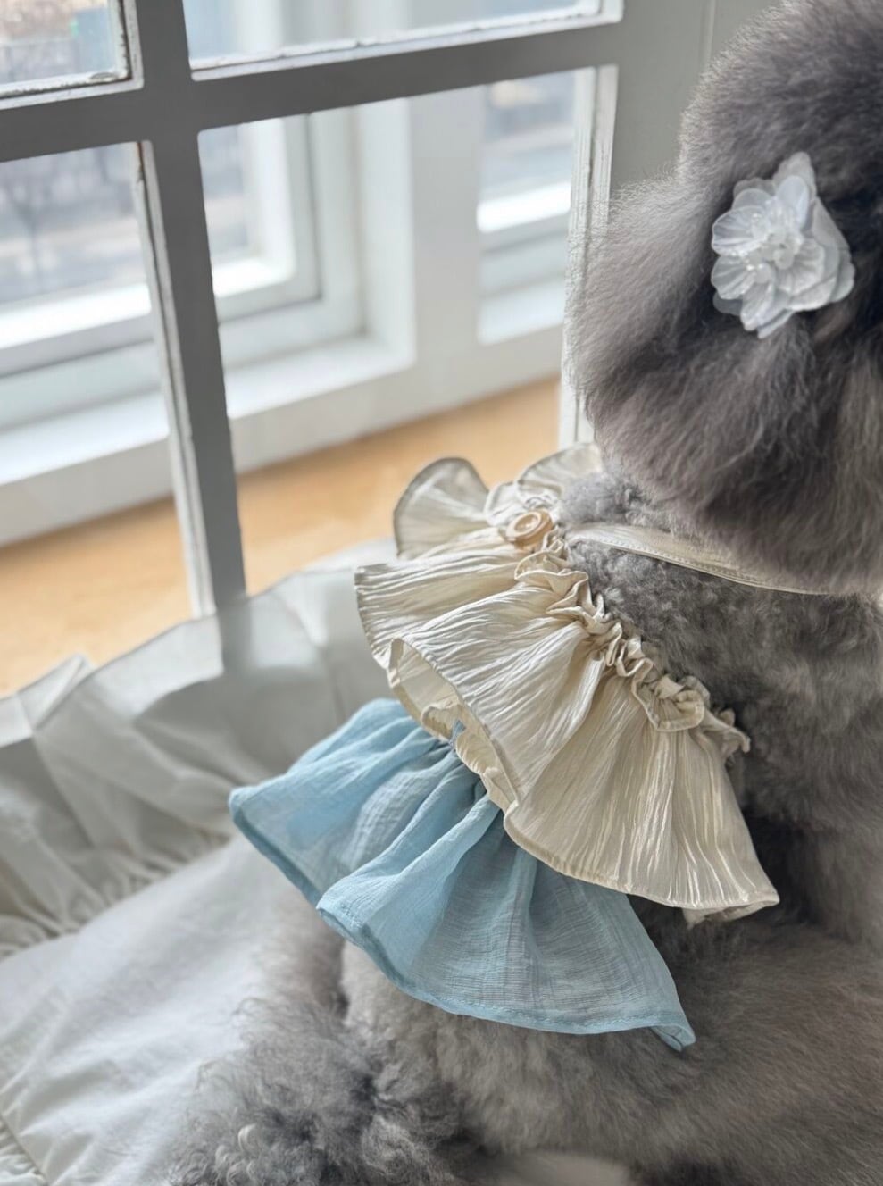 予約 【Lorelei Dog】 Velour Spring Hairpin (White/Pearl Gray)