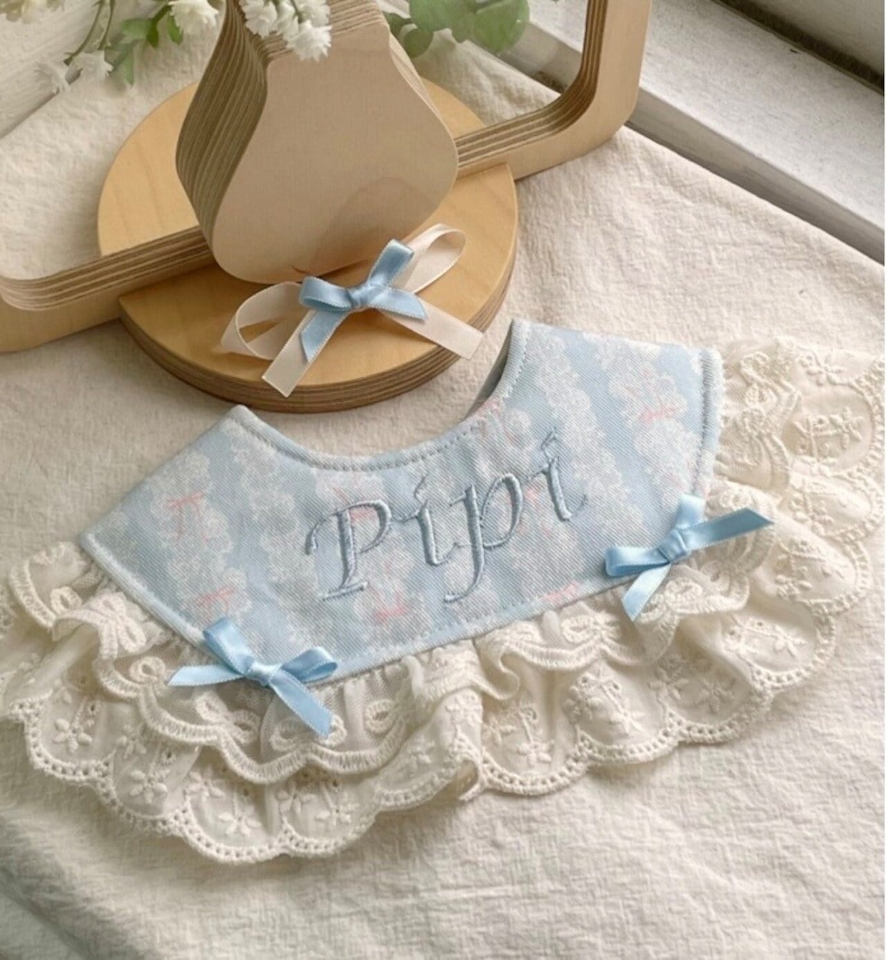 名入れ刺繍 レースビブ(リボン付き)