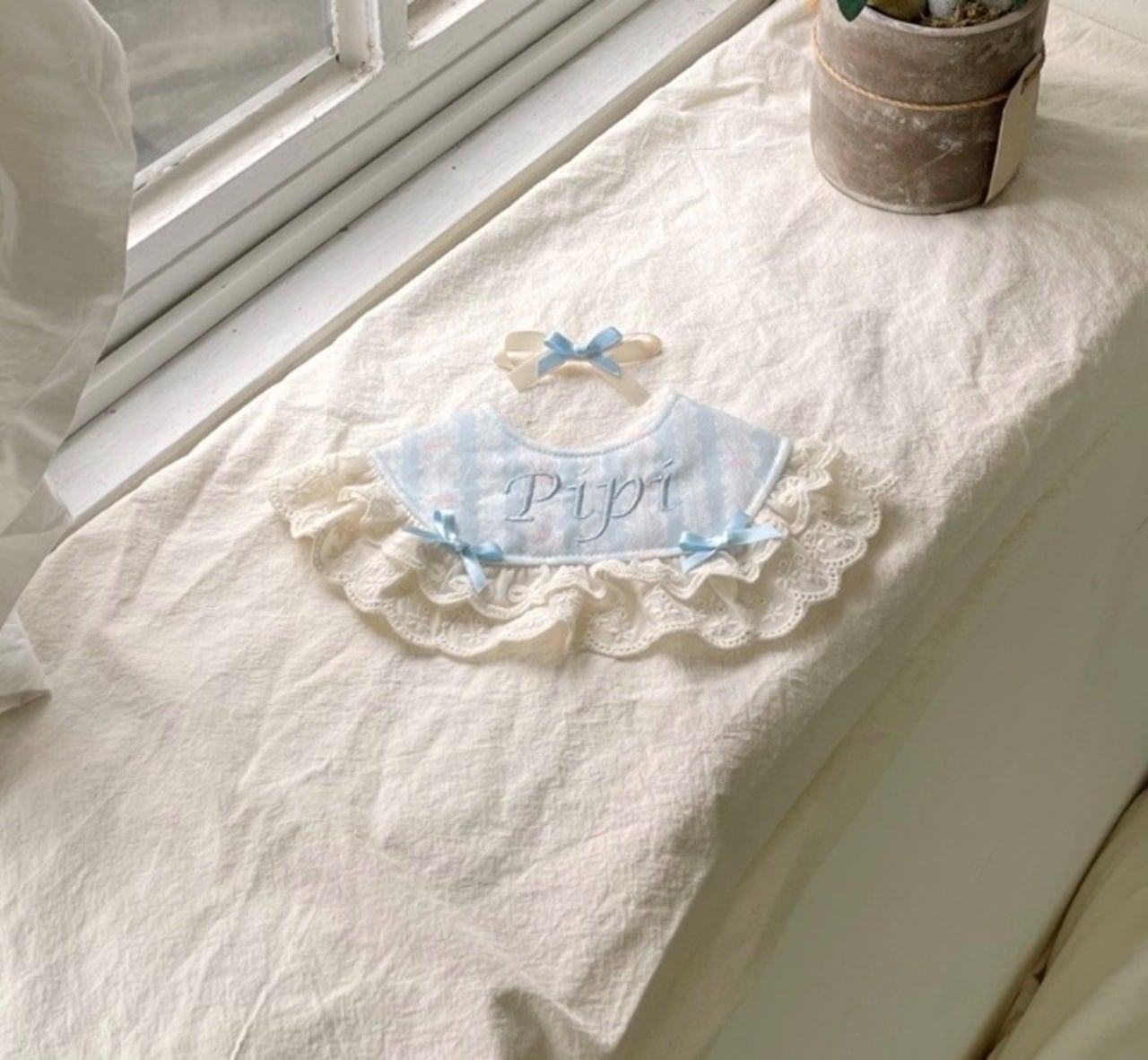 hugmemoreらしい上品でロマンティックなビブ。