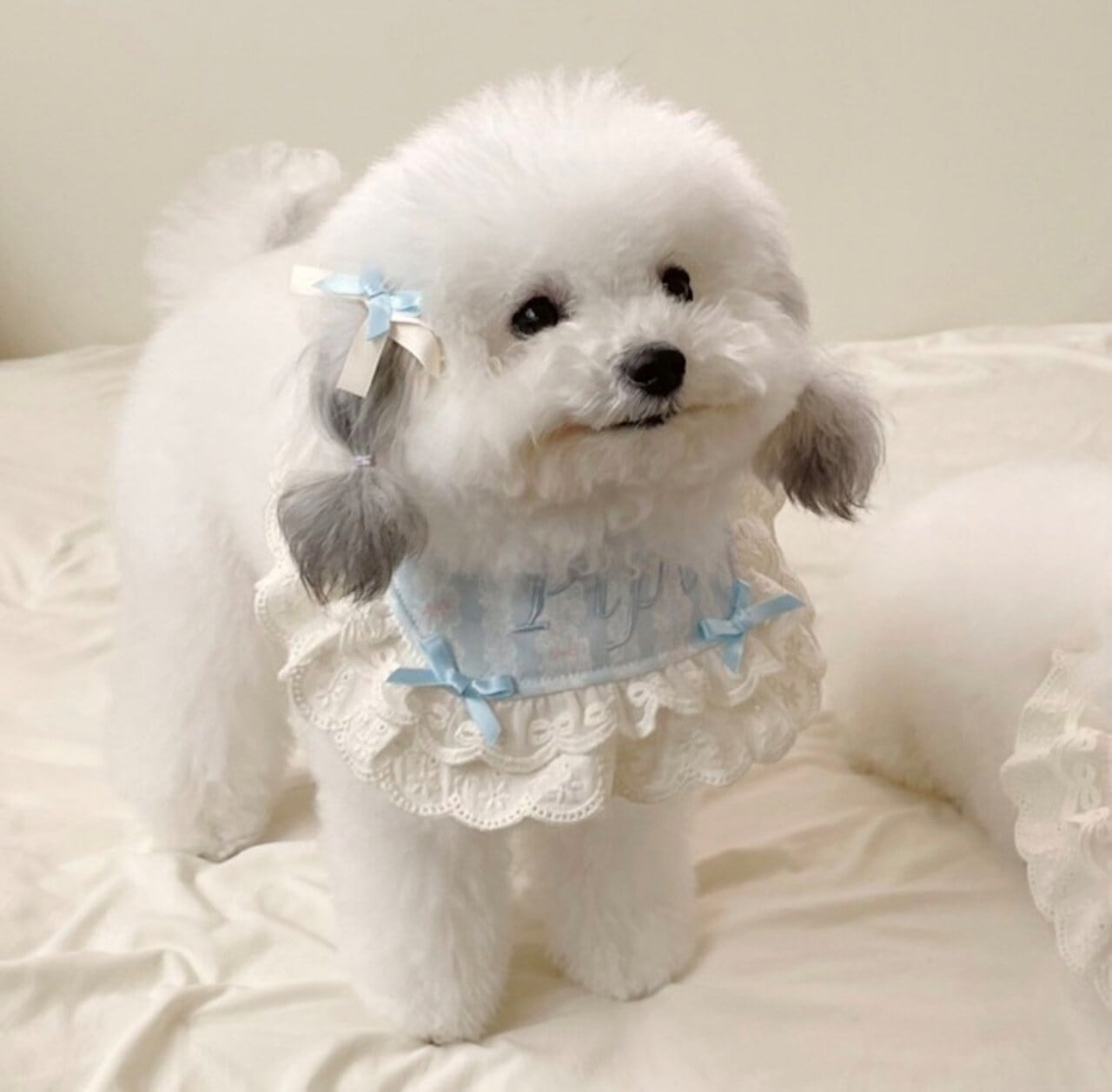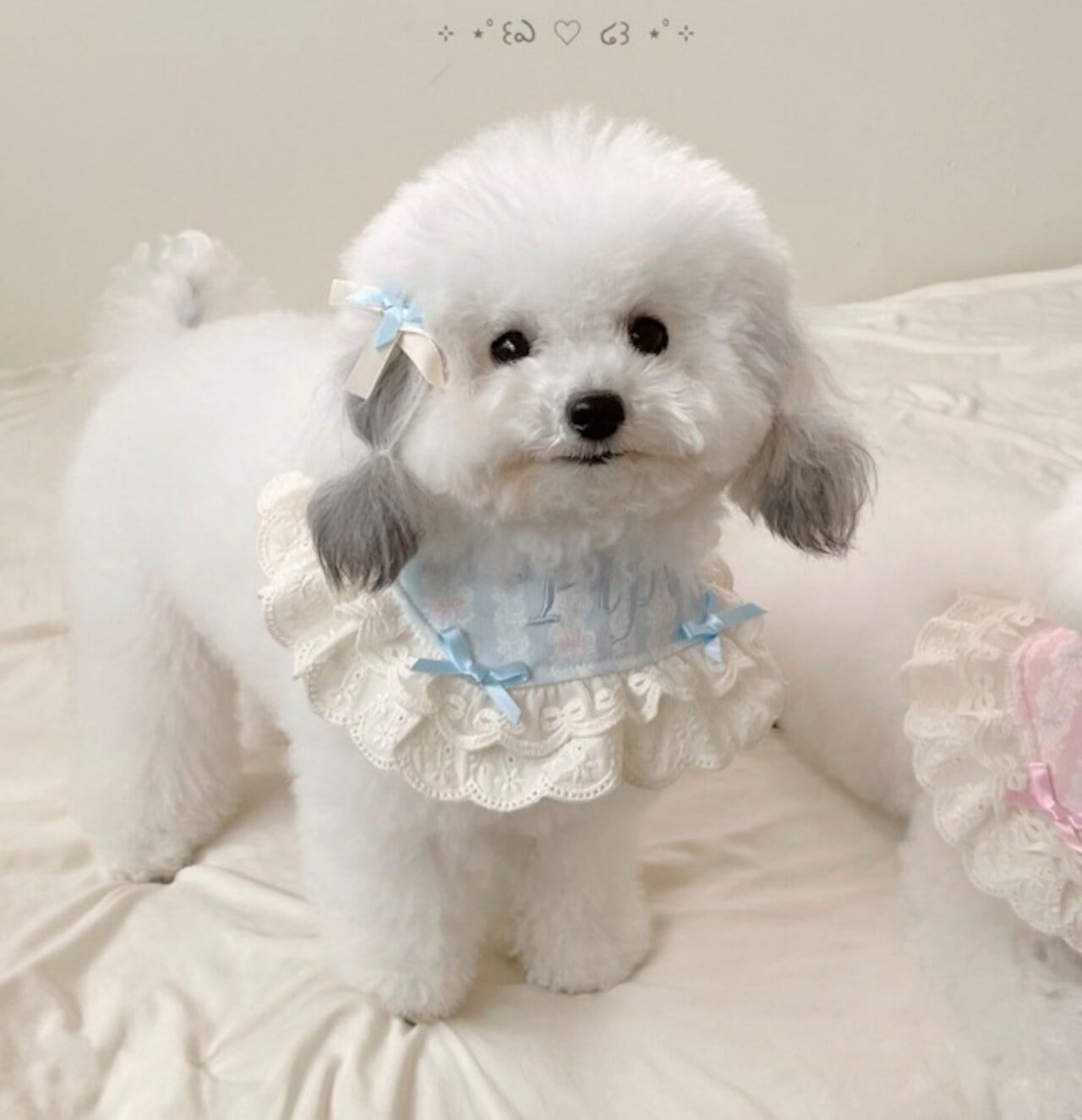 予約【hugmemore】Dear Name Lace Bib(blue) / 名入れ刺繍レースビブ 犬スタイ 韓国犬服