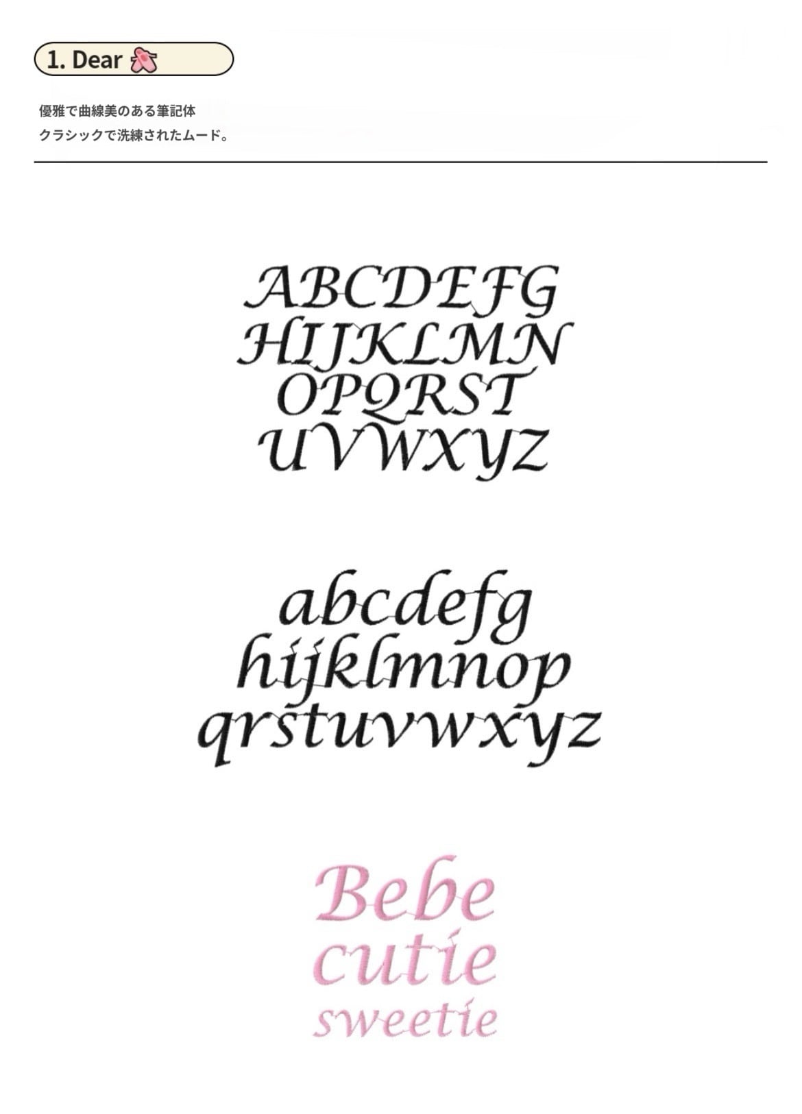 ① Dear fontでの刺繍となります)