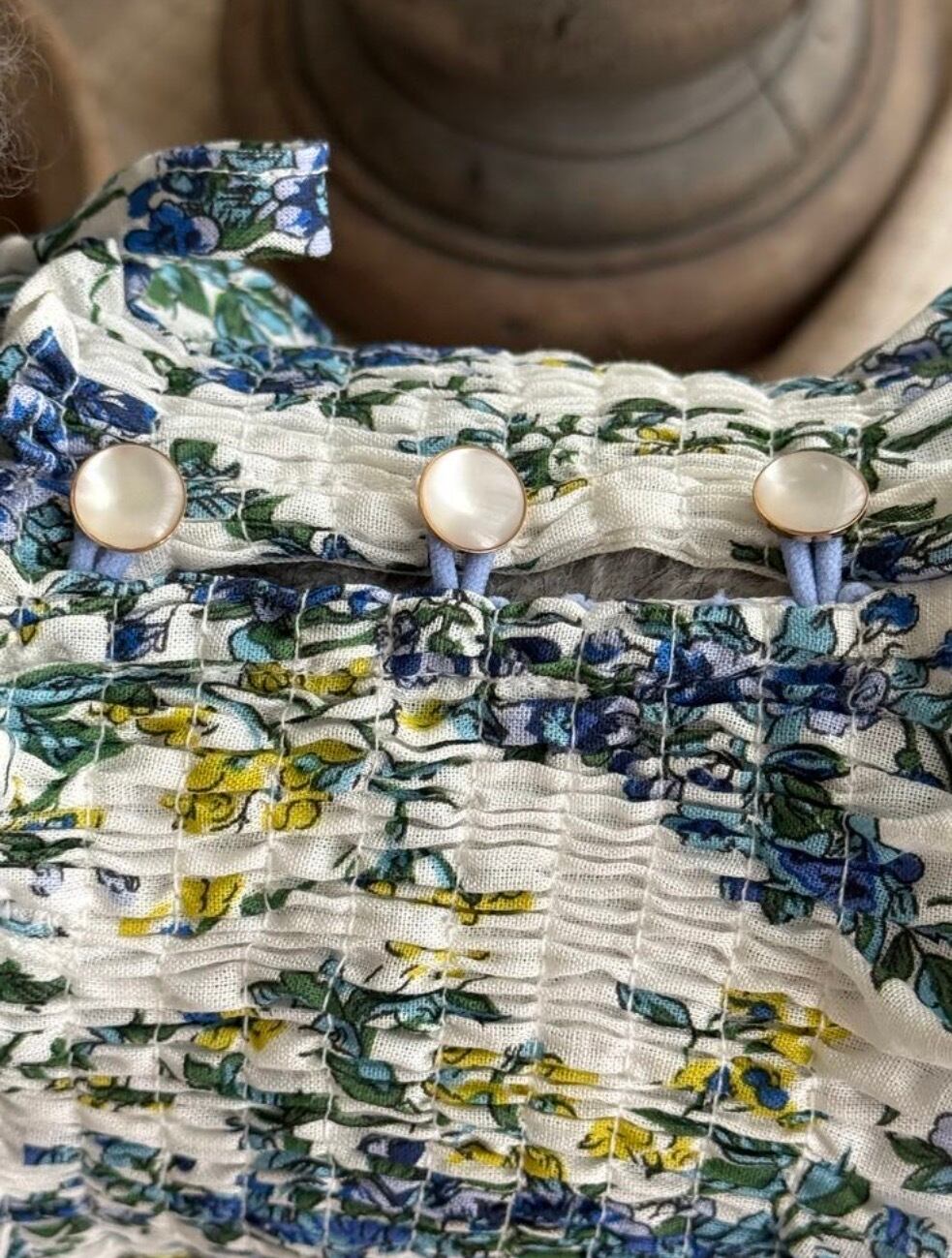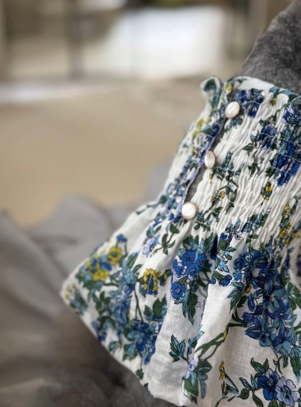 繊細なスモッキングディテールが目を惹く、