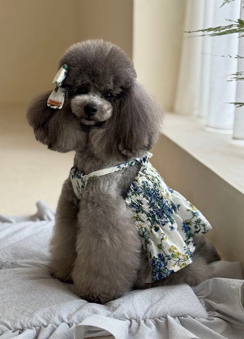 予約 【Lorelei Dog】 Garden Smocking Dress (blue)